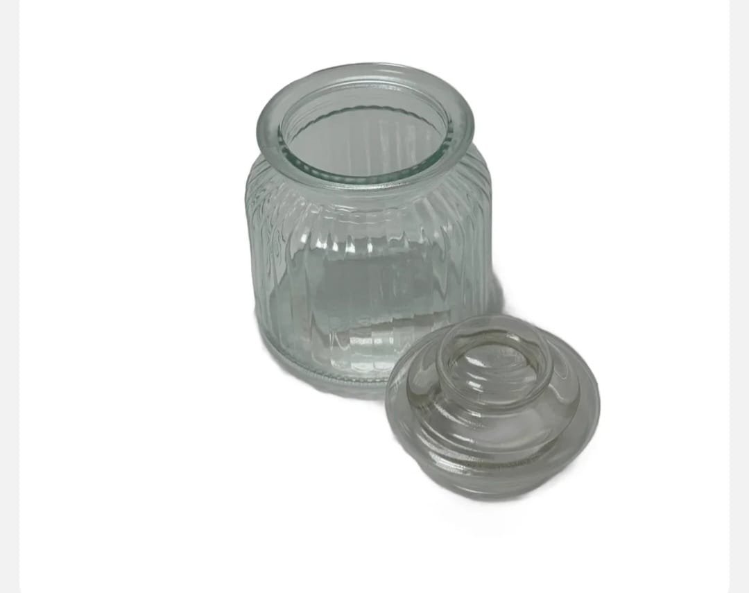 Borcan decorativ din sticla cu forma patrata si capac metalic in stil vintage. Ideal pentru ambalarea mierii, dulceatei, condimentelor sau ca recipient pentru cadouri rustice si artizanale.