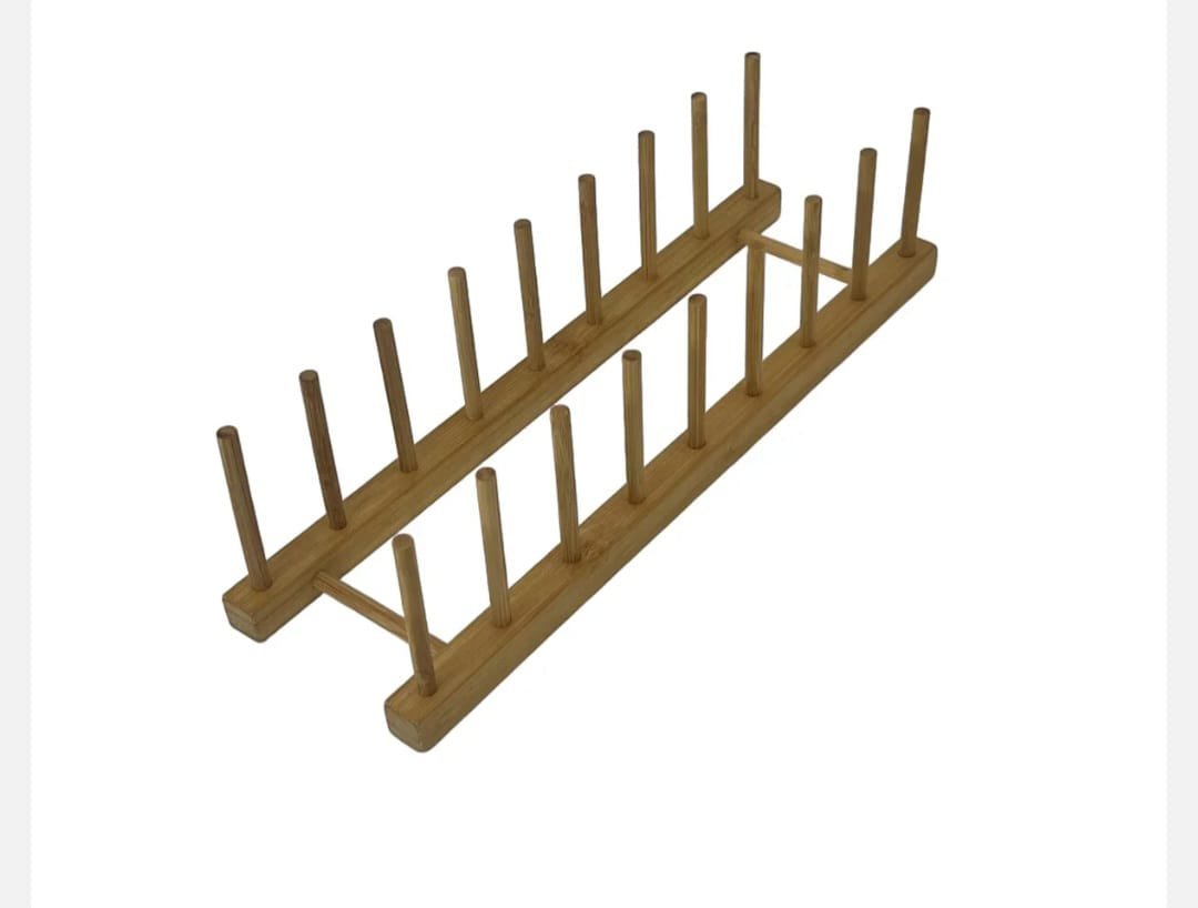 Organizator vertical din bambus cu 2 nivele, ideal pentru depozitarea farfuriilor, tavilor sau capace in dulapuri sau pe blat.