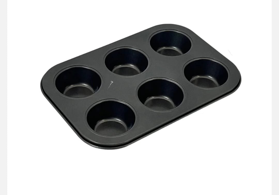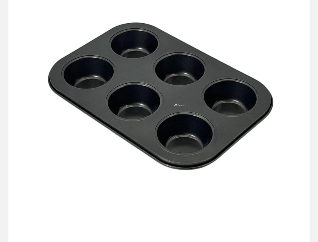 Tava de copt cu 6 forme pentru briose, realizata din metal cu strat antiaderent, dimensiuni 26×18×3 cm. Perfecta pentru muffins pufosi, prajituri portionate sau oua coapte la cuptor.