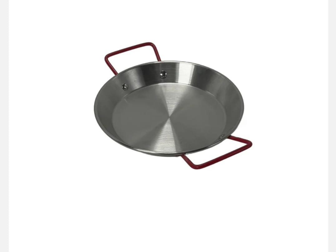 Tigaie din inox cu diametru de 20 cm, prevazuta cu doua manere laterale rosii din material termorezistent. Ideala pentru gatit sau servire directa la masa.